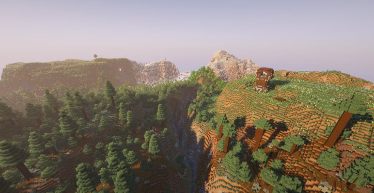 Этот сид — находка для любителей приключений, контраста биомов и атмосферных построек. Здесь сочетаются красота реликтового березняка, мрачность бледного сада, древние руины под землей и суровые зимние просторы.