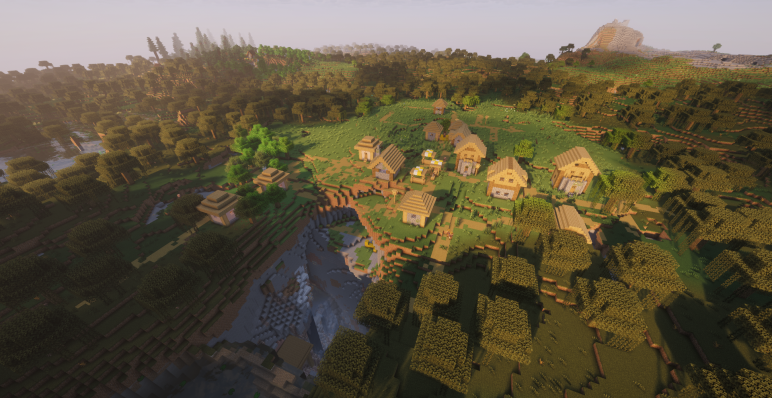 Практически на краю болота находятся небольшие участки других биомов: тайга, обычный лес и равнины. Именно на кусочке тайги расположилась еще одна деревня на координатах (-144, 304). Она становится хорошей альтернативой для торговли и расширения хозяйства.