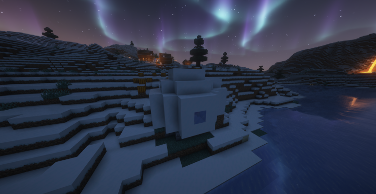 Сид на контраст биомов, две деревни, иглу, разбойников и клад