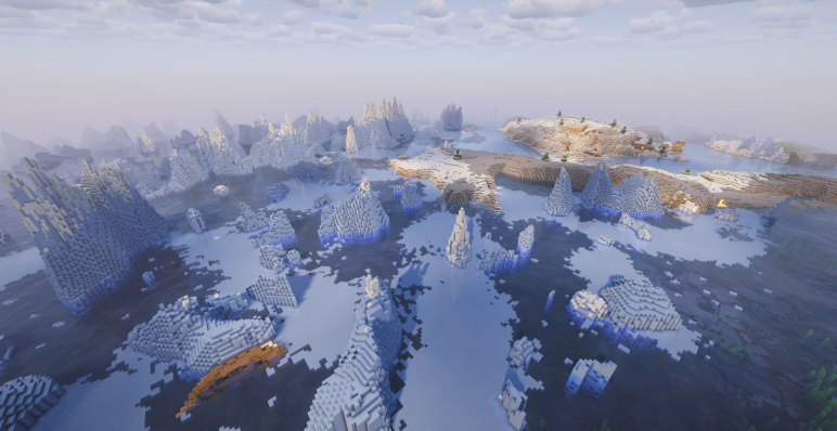 Игрок рождается посреди вечного льда, но вокруг — целая цепочка структур, каждая из которых несет свою историю и полезный лут. От портала, замерзшего в ледяной ловушке, до деревни, двух кораблей и подводных руин — все это формирует путь настоящего выжившего, который должен вырвать шанс на жизнь из холодного океана.