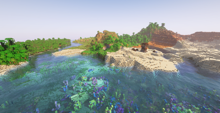С самого начала игрок появляется на пересечении густого зелёного леса и влажных тропических джунглей. Это место идеально подходит для старта, ведь здесь можно найти самые разные ресурсы, от древесины и лиан до бамбука и тропических фруктов.