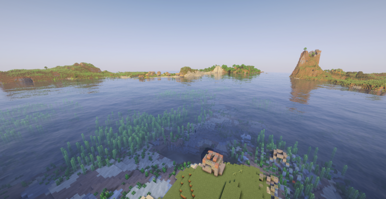 Этот сид идеально подойдет тем, кто любит атмосферные, но мирные старты, где рядом есть все необходимое: ресурсы, деревня, магические места и даже руины древних цивилизаций. Начало на острове делает выживание интересным, а окружающее пространство — вдохновляющим для строительства и исследования.