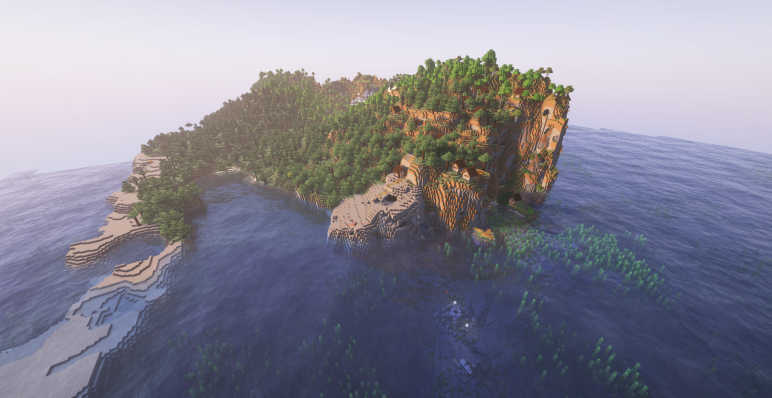 Игрок появляется на большом острове (272, -192), который одновременно объединяет несколько биомов: просторные равнины, густой лес, холодную тайгу и суровый каменистый берег с величественным утесом. Уже с первых шагов этот остров поражает своей красотой: с одной стороны зеленые леса, с другой — холодная тайга, а прямо у побережья возвышается каменистый обрыв, уходящий в океан.