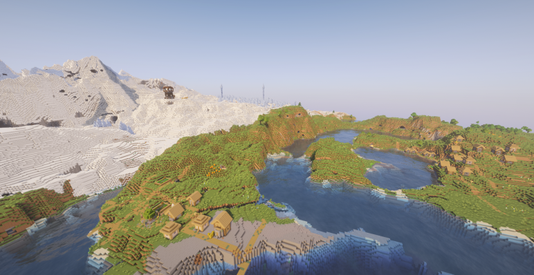 Первое, что бросается в глаза после спавна, — это две большие деревни, расположенные по разные стороны от игрока.