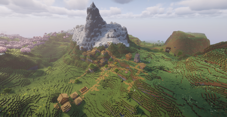 Равнины, вишневые деревья, снежные горы, иглу с подвалом, древний город, портал, деревня и аванпост — все расположено сравнительно близко и логично связано между собой. Такой мир идеально подойдет как для долгого выживания, так и для атмосферного приключения с постепенным погружением в самые опасные и интересные уголки Майнкрафт.