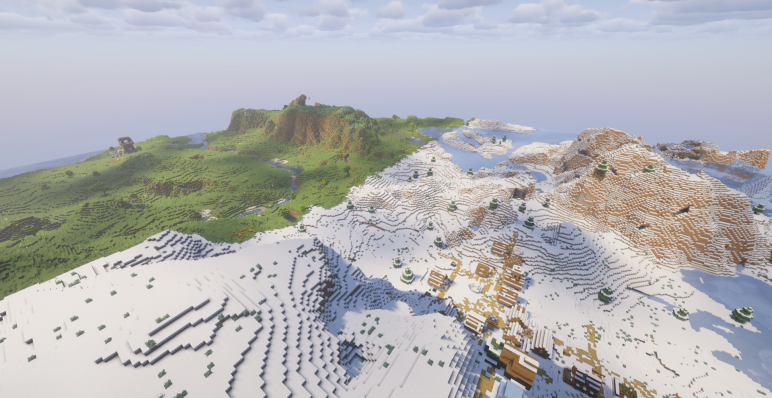 Параллельно этой деревне, ближе к равнинам, находится вторая деревня (624, 768). Она стоит у границы между снежными равнинами и зелеными лугами, где природа буквально меняется на глазах.