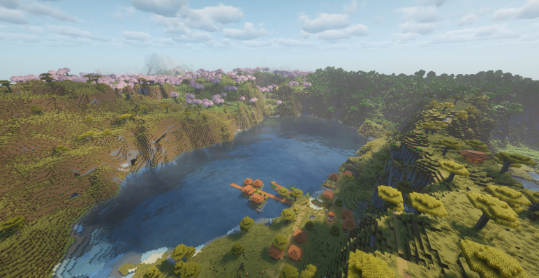 Она расположена в идеальном месте: ровная территория, много пространства для фермы или базы, и рядом — сразу несколько биомов.