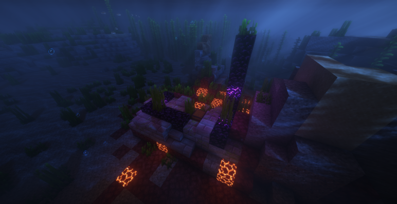 Для настоящих искателей приключений стоит отправиться к координатам 105, -16, 217. Под водой здесь скрываются камеры испытаний — редкая и опасная структура, идеально подходящая для битв, поиска лута и проверки своих навыков выживания.